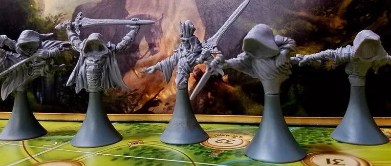 选择相当残酷:上午就把”猎杀”骰子全砸出去,赌佛罗多此刻就在脚下?还是留一颗”感知”到夜晚,等他贪路时露出马脚?佛罗多要是选择在夜间移动,戒灵还能白嫖一次猎杀机会。骰子的价值就这么忽高忽低地波动着,猎人不再只是跟在后头追,更像一群伏在草丛里的蛇,等着对手急躁犯错。