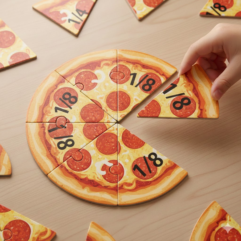 《披萨家》做了一件什么事?它把那个让人头大的“分数运算”,还原成了最直观的物理切分。